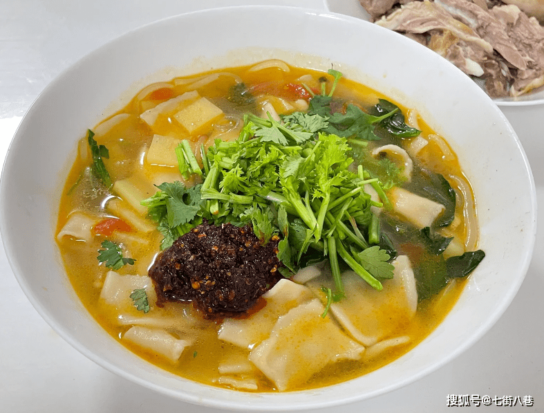 扯面:扯面是甘肃传统的汉族面食之一,也是甘肃人日常饮食中常见的食物。它以面团擀成薄片,然后用手撕成条状,再煮熟即可。扯面口感劲道,配以各种调料和配菜,味道鲜美。