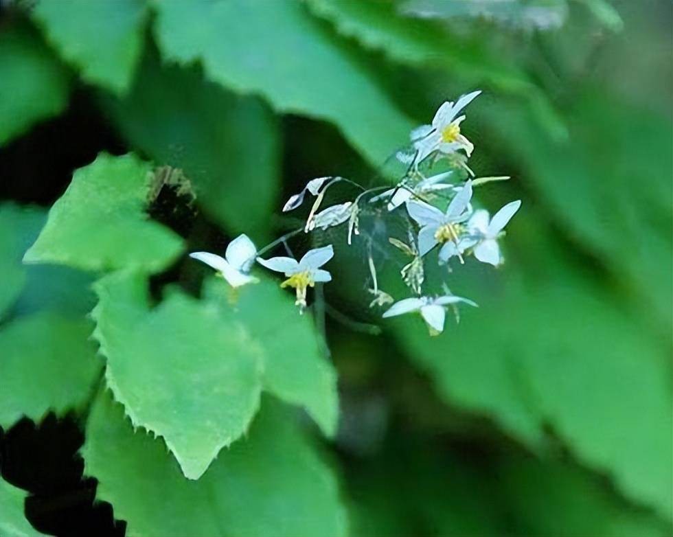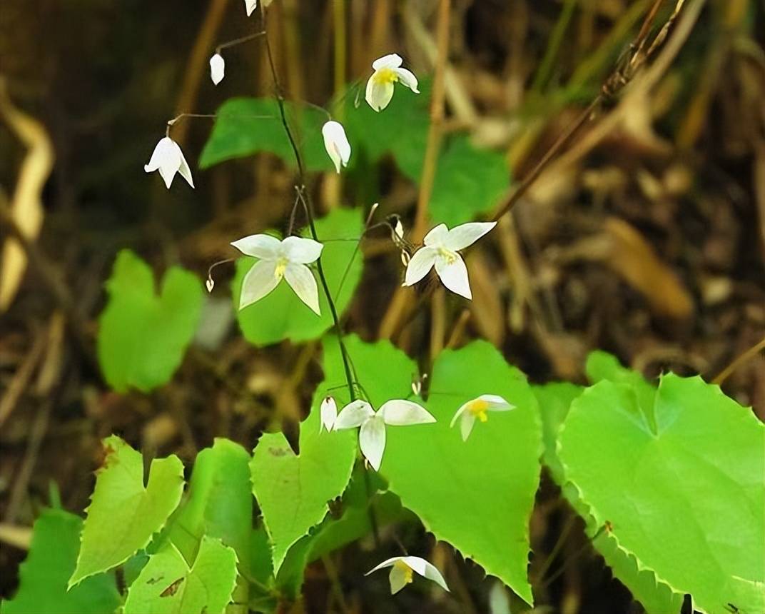 这种野草名字叫做“淫羊藿”,主要生长在600-3500米海拔高度的山林中,在陕西、河南、湖北、四川都有分布,分布区域不广,但是数量较多的野草,如今不算稀罕,但是依旧价值珍贵。它喜欢生长在阴凉潮湿的环境,在以前经常被用来当作牲畜的饲料,农民们山上劳作的时候,见到它就会砍回家。它的叶片周围有细密的锯齿状,花朵比较细小,成簇生长,白色的花瓣看上去清新淡雅。
