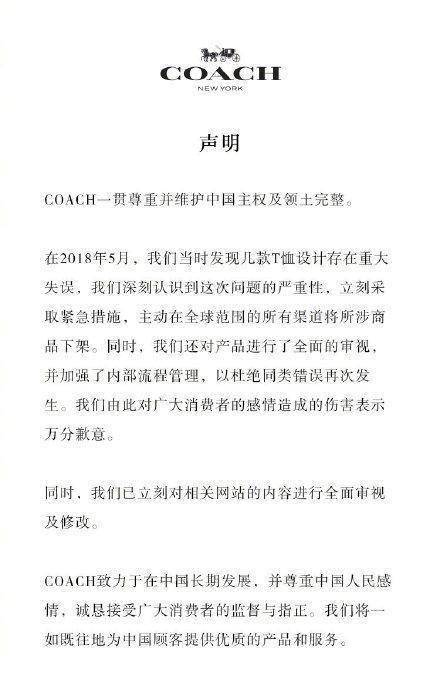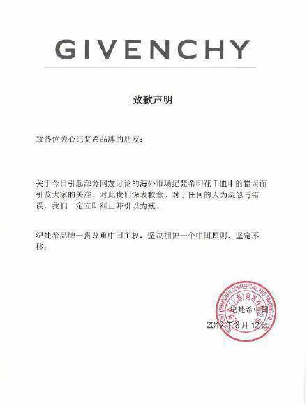 最近,从范思哲,蔻驰,纪梵希起已经超过6家国际奢侈品品牌连连被曝光在T恤设计中错误将,香港,澳门,台湾从中国划分出来。