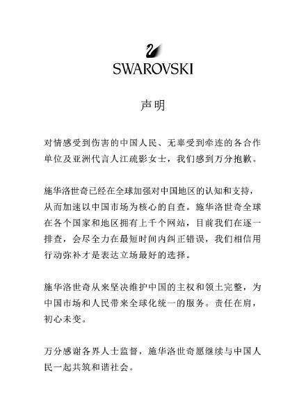 昨天的道歉风波还没有完,今天施华洛世奇又因“网站将香港设为国家”出来道歉,CK道歉等等,这是在集体作秀吗?中国代言人江疏影解约,林允直接删除微博产品相关内容。