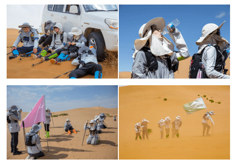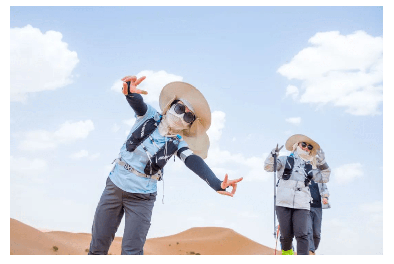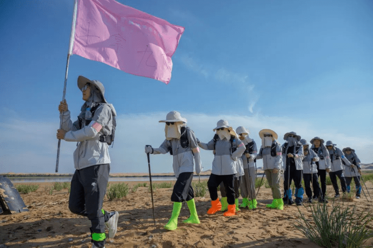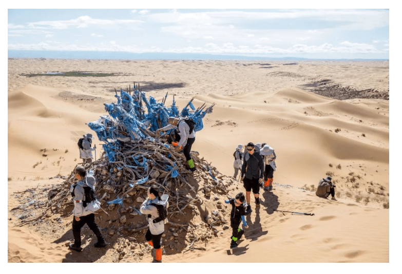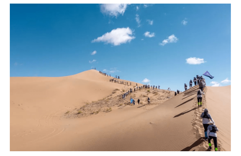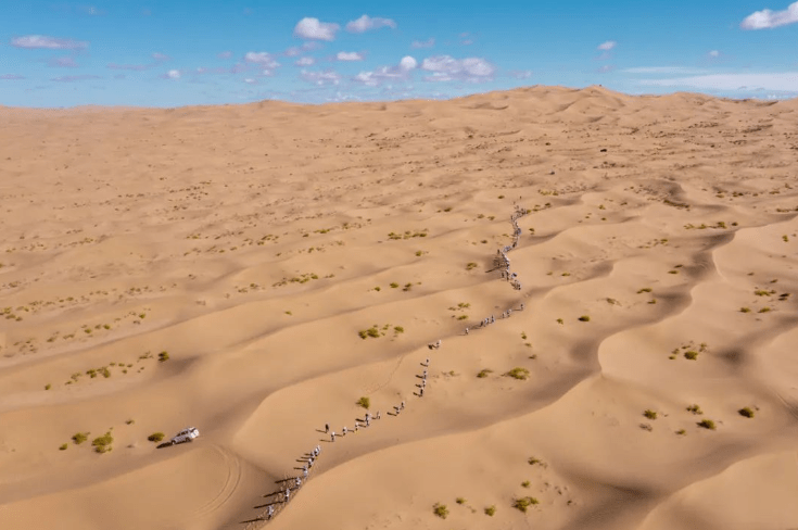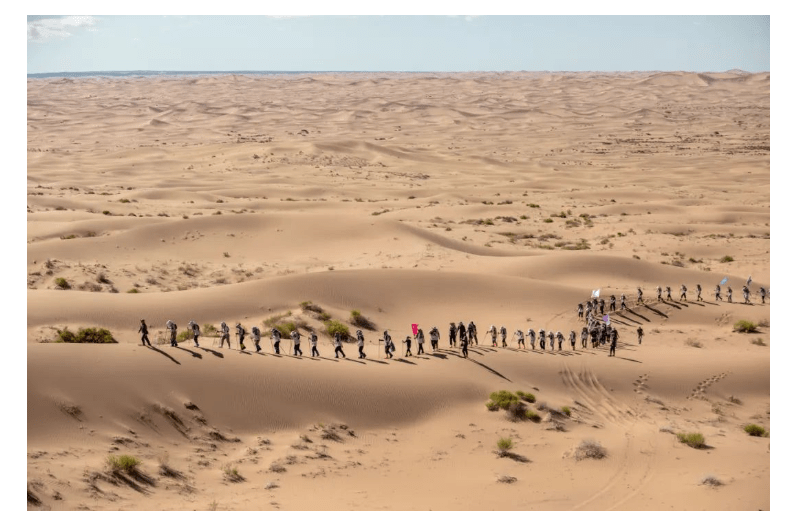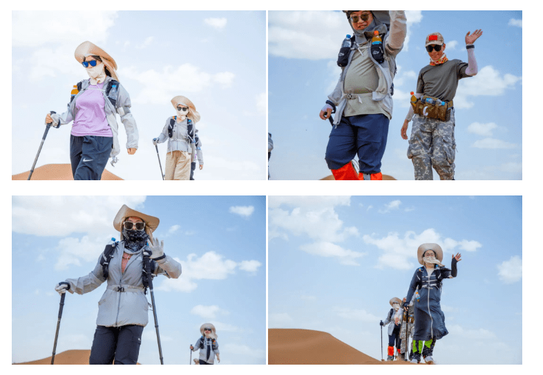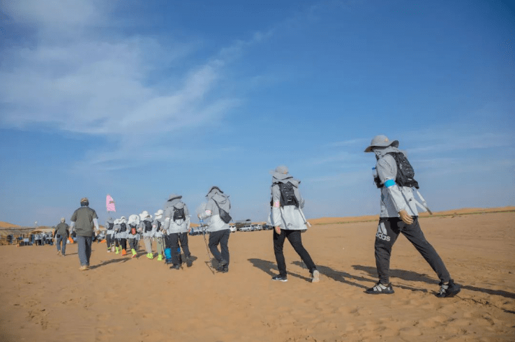 在这段28公里的徒步旅程中,沙丘上风沙的侵袭和被沙子磨破的脚掌对大部分人来说都是未曾经历过的挑战。然而,在采访率先到达的前几组队员时,他们表示是队友的鼓励和目标使他们坚持下来。