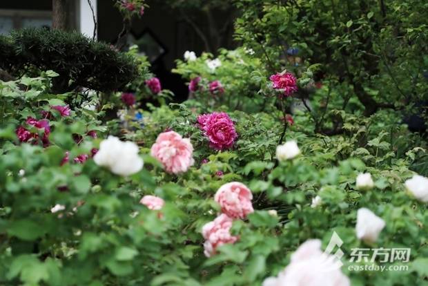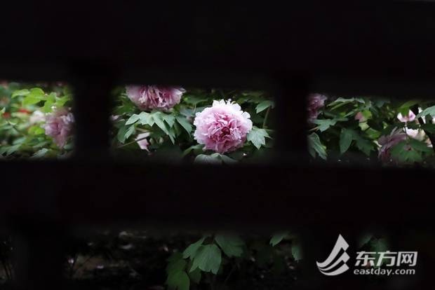 东方网记者柏可林4月6日摄影报道:四月牡丹满庭芳。伴随着淅淅沥沥的春雨,漕溪公园的牡丹绽放枝头,一朵朵玉笑珠香、高贵雍容,阵阵馨香扑鼻而来,令人心驰神往。根据今年天气情况,牡丹佳赏花时节将持续到4月10日。