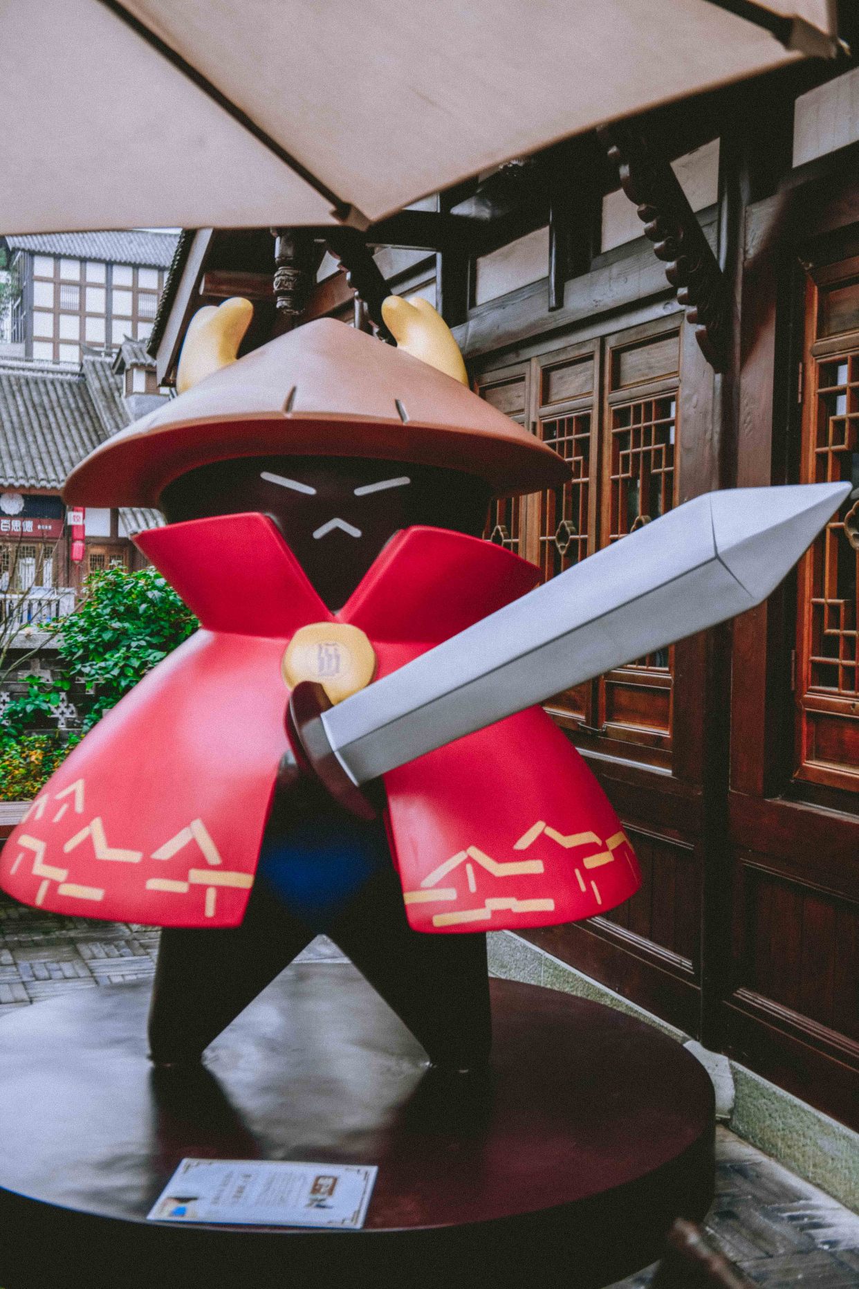 磁器口街可以直接通到江边,一节节台阶上的铜牌标记着历年来的最高水位,彰显着这座小镇的历史。漫步到磁器口后街,后街秉承“保护传承,提档升级”的理念,木质吊脚楼建筑古朴自然,随处可见的绯色油纸伞则更为原本的青砖黛瓦增添了一抹亮色,站在油纸伞下,等华灯初上,满天星辰下,是否就真真映了那句“蓦然回首,那人却在,灯火阑珊处!”