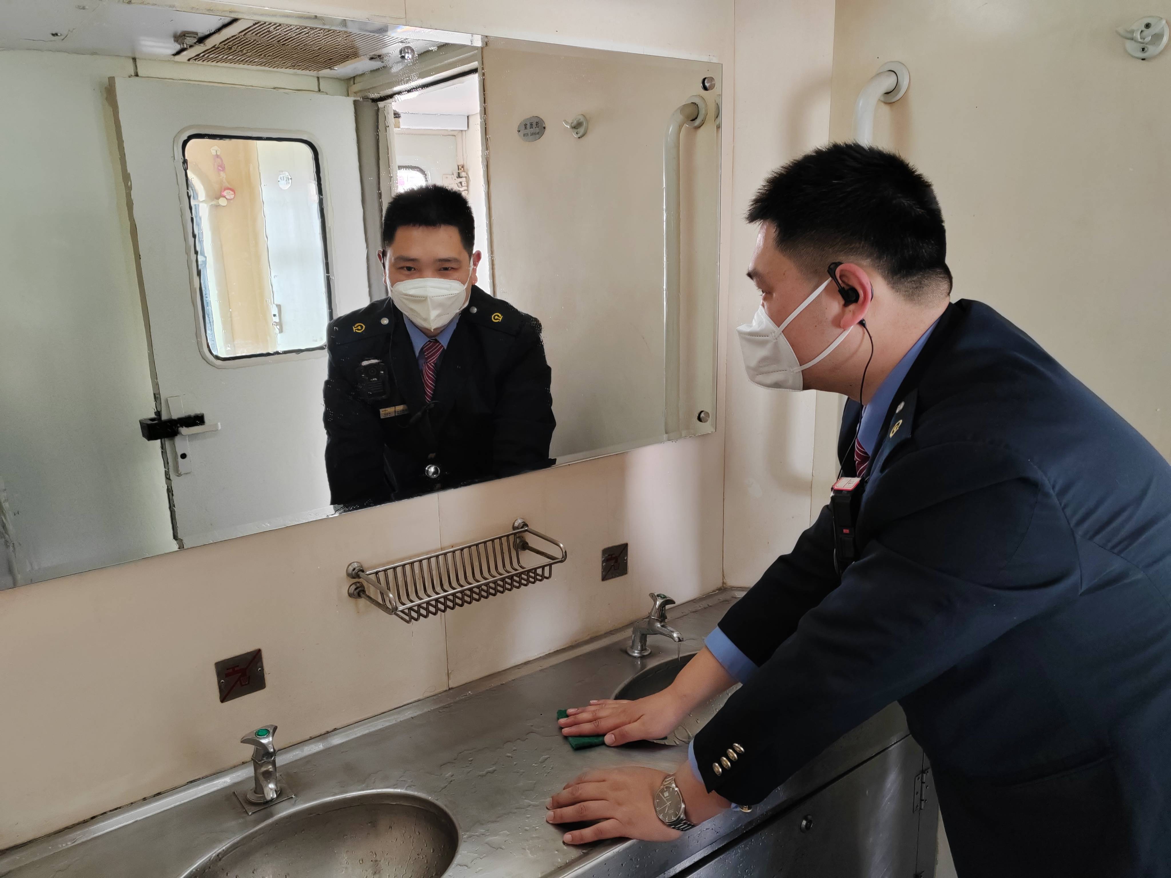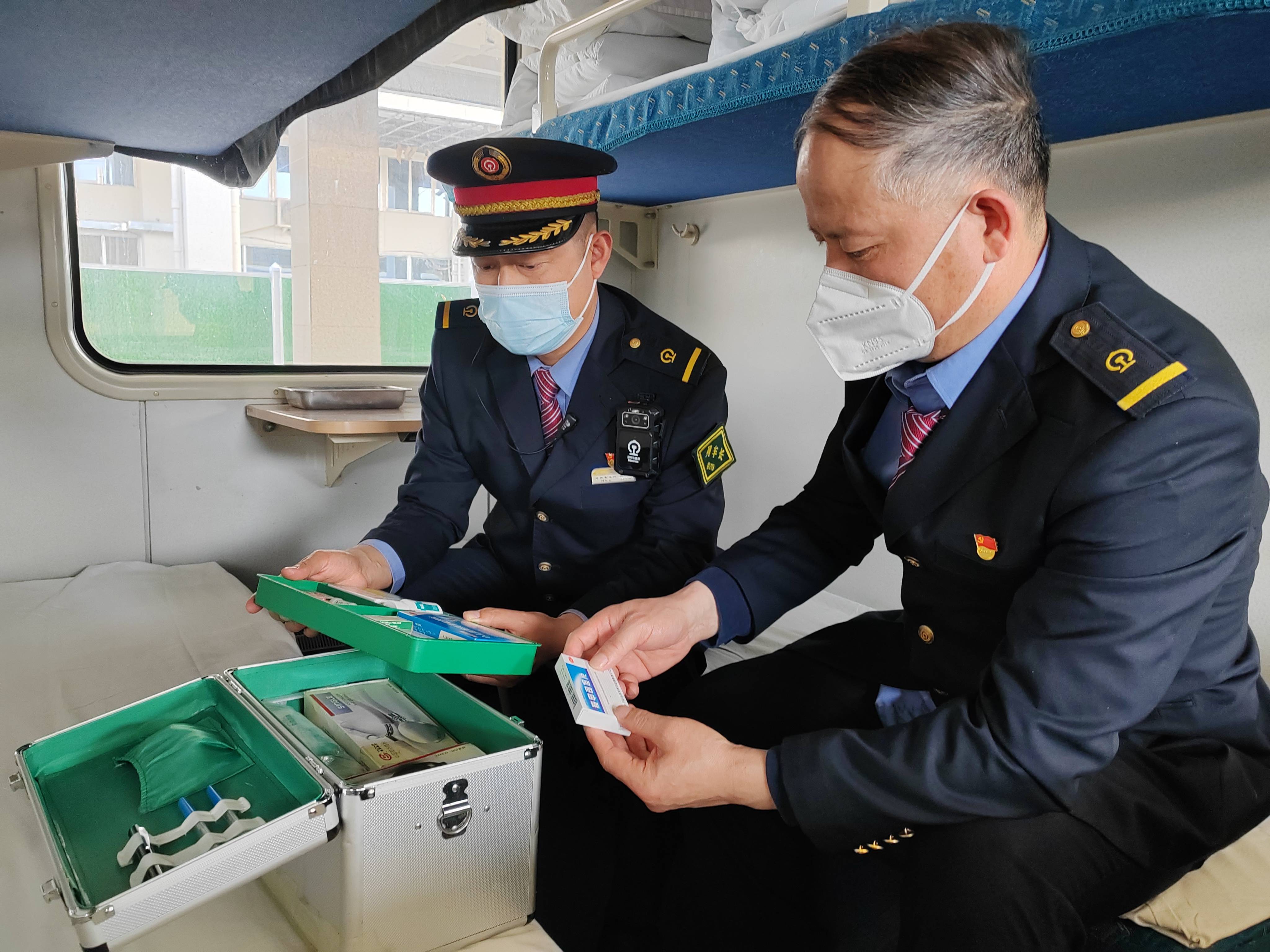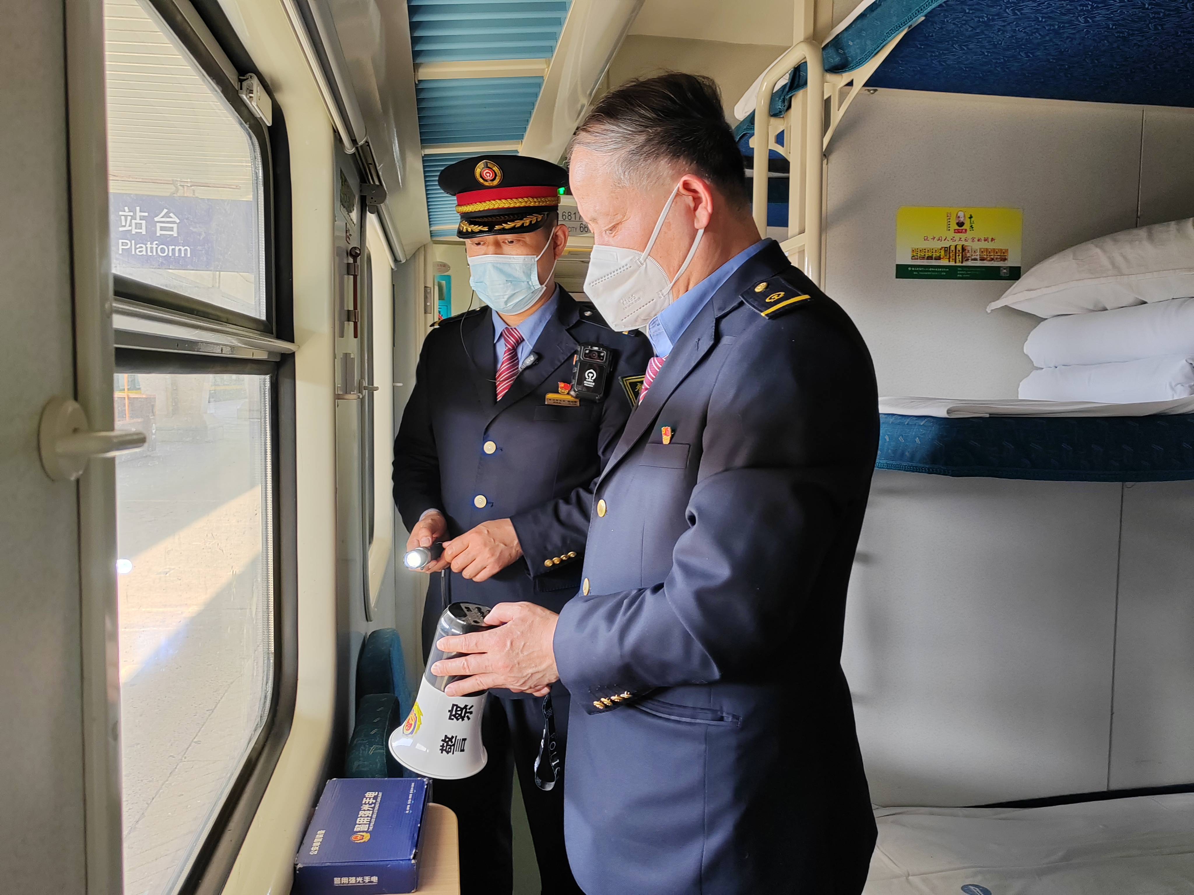 列车开出以前,列车工作人员将对列车进行一次全面的认真细致的“体检”——“三乘检查”,每趟出乘时,车队领导、列车长、乘务长、乘警长按规定的时间到达列车上,按照各自分工对列车上的每个部位、设备设施进行细致的安全联检,发现问题及时登记上报处理。岗位列车员对本岗位进行预检及卧具备品的定位及整理,以确保列车安全万无一失、车厢内卧具整齐清洁、卫生无死角。这趟列车的每位乘务员都具备过硬的专业素养,他们掌握专业知识体系,接受系统的服务礼仪训练,对列车突发事件应急处理预案每月进行实景演练,旅客们在乘车途中遇到什么样地困难请您随时找列车工作人员,我们必然会为您排忧解难。面对旅客多种多样的需求,这趟列车还为旅客提供了特色服务,例如配备了多种多样的服务备品。如一次性茶杯、一次性座便垫、卫生用纸、一次性拖鞋、针线包等等。并对有特殊需要的旅客提供特殊服务,在服务中如果发现我们工作中的不是之处请随时指出,我们将实行首问首诉负责制,请及时联系本车厢列车员或拨打列车长的电话,我们将第一时间为旅客解决问题。秉持全心全意为旅客服务的宗旨,让每一位乘坐本次列车的旅客告别冏途,让每一位旅客旅途安全无忧。让服务细节伴随旅客安全出行,温馨出行。