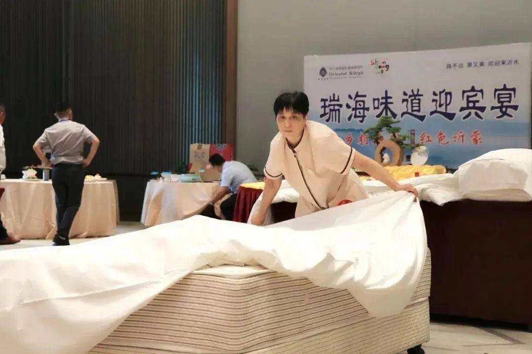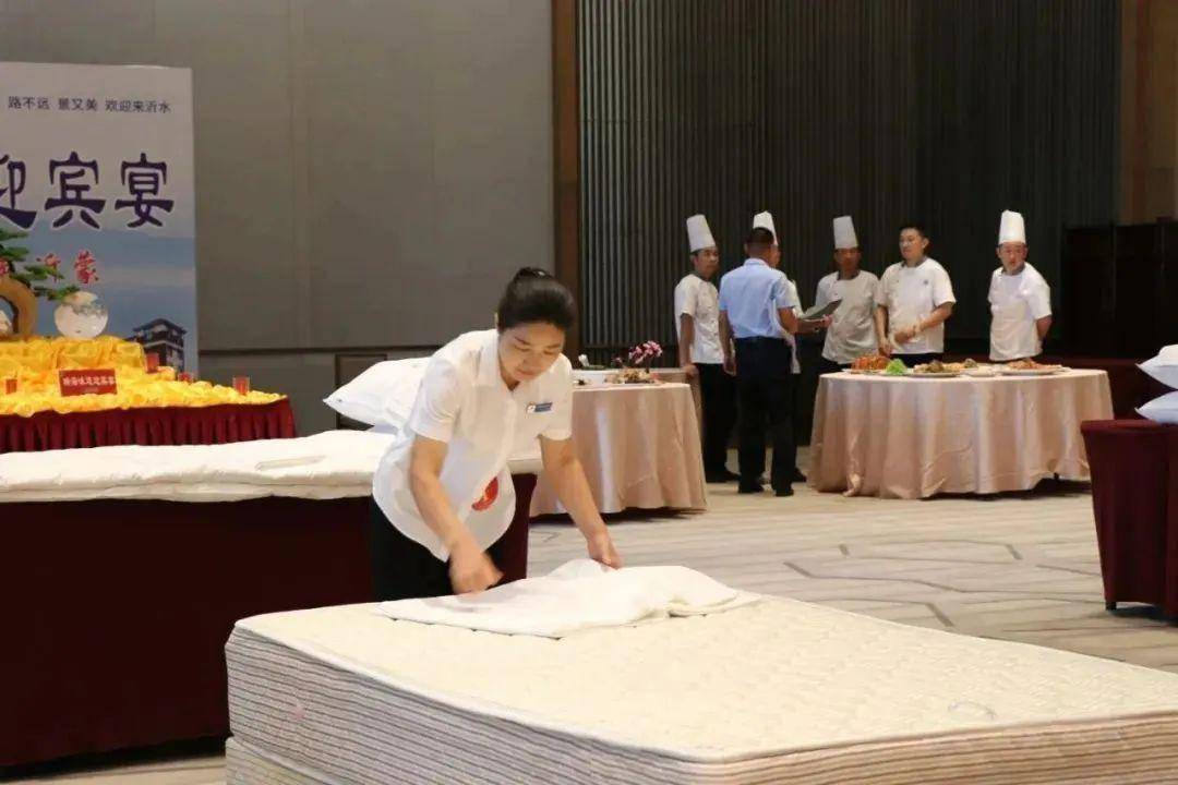 7月28日,由沂水县文化旅游发展促进中心主办的沂水县旅游行业“东方瑞海杯”第十三届 “劳动之星”旅游职业技能竞赛在东方瑞海国际温泉度假村开幕。全县选拔出20余支精英代表队伍汇聚一堂,参加了中式客房铺床、中餐摆台、中式烹调、宴席四项实操比赛进行学习交流。临沂市人力资源社会保障服务中心党总支副书记张京需,沂水县委常委、组织部长闫从发,沂水县政府副县长王海娟及相关部门领导对大赛现场进行巡视指导。