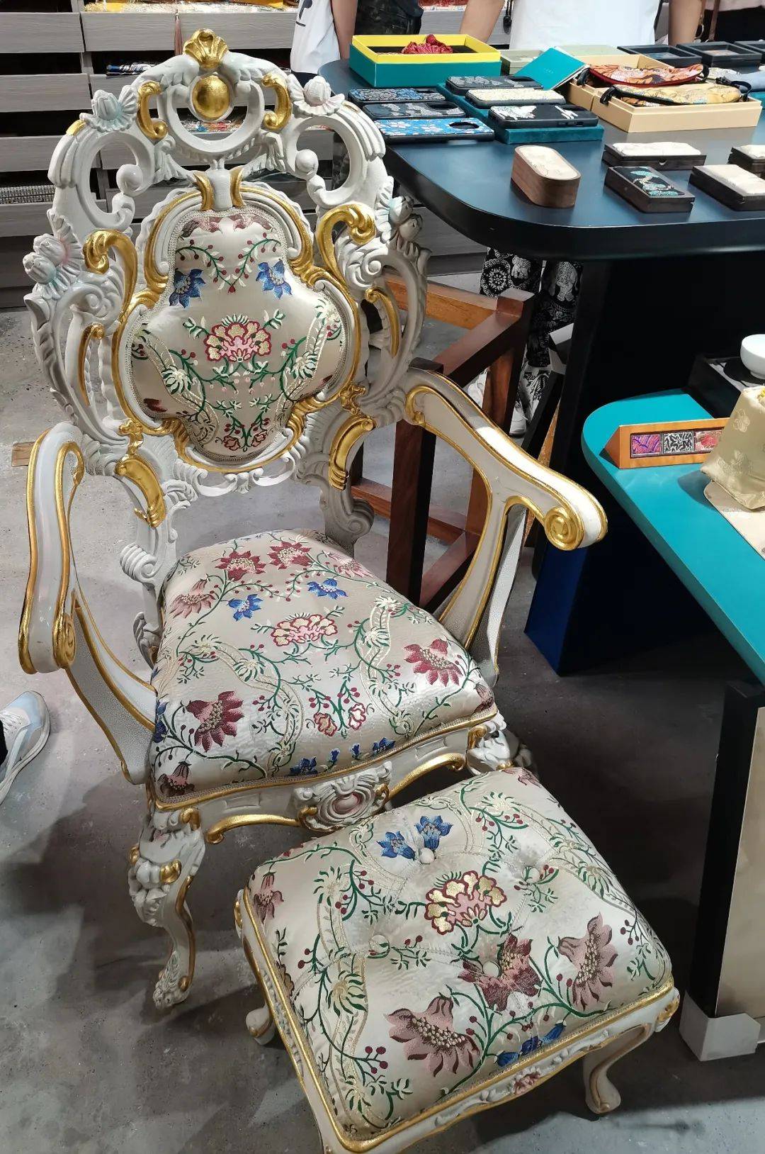 图为南京晨光1865创意产业园云锦工艺品椅子