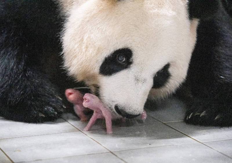 这是7月7日在位于韩国京畿道龙仁市的爱宝乐园里拍摄的大熊猫妈妈“爱宝(华妮)”和刚诞生的大熊猫宝宝。据韩国京畿道龙仁市爱宝乐园介绍,旅韩大熊猫“爱宝(华妮)”于7月7日清晨顺利产下一对雌性双胞胎幼崽。这是旅韩大熊猫“爱宝(华妮)”和“乐宝(园欣)”继2020年诞下“福宝”后在韩国再次自然交配并诞下幼崽。 新华社发