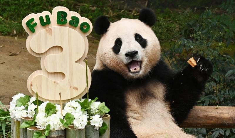 7月20日,在位于韩国京畿道龙仁市的爱宝乐园,大熊猫“福宝”享用它的“生日蛋糕”。当日,在韩国出生的大熊猫“福宝”迎来3岁生日,园区制作了由竹子和胡萝卜组成的“蛋糕”为其庆生。 新华社发