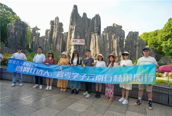 穿梭在鬼斧神工的石林中,漫步于水光潋滟的长湖畔,在杏林大观园里泡温泉,于糯黑村寨里围着篝火起舞……在刚刚过去的4天3夜里,来自四川的网络达人和刚参加完高考的学子们组成采风团,一起打卡云南石林,共同度过了一个清凉的夏日假期。