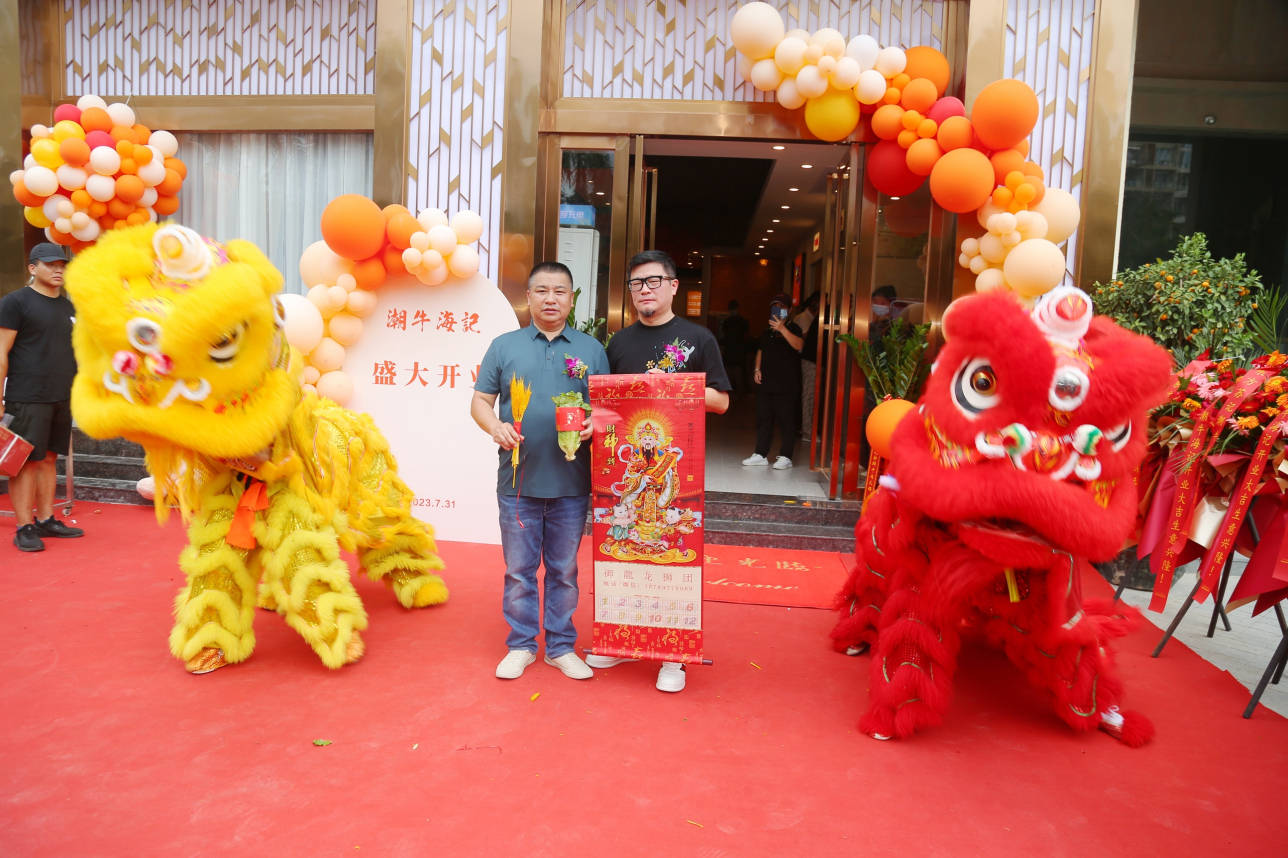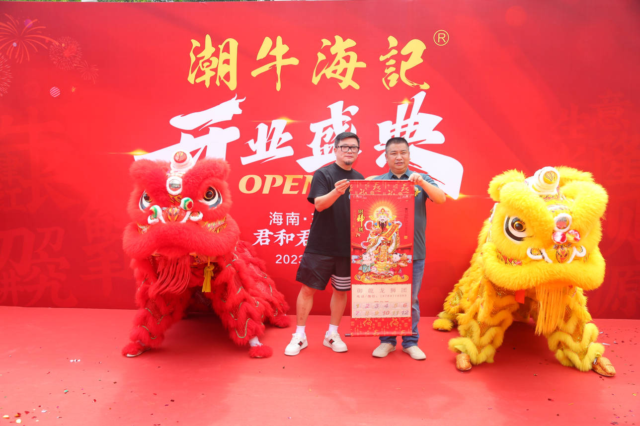海南星久源餐饮连锁董事长杨国、潮牛海记创始人沈知明先为祥狮点睛