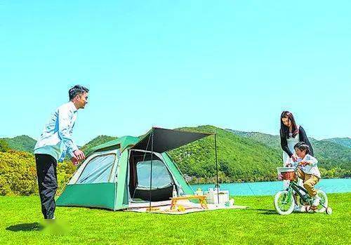 蓝天白云下,青山绿水间,支一顶帐篷,邀亲朋好友,听蝉鸣,闻清风,话家常,好不惬意。