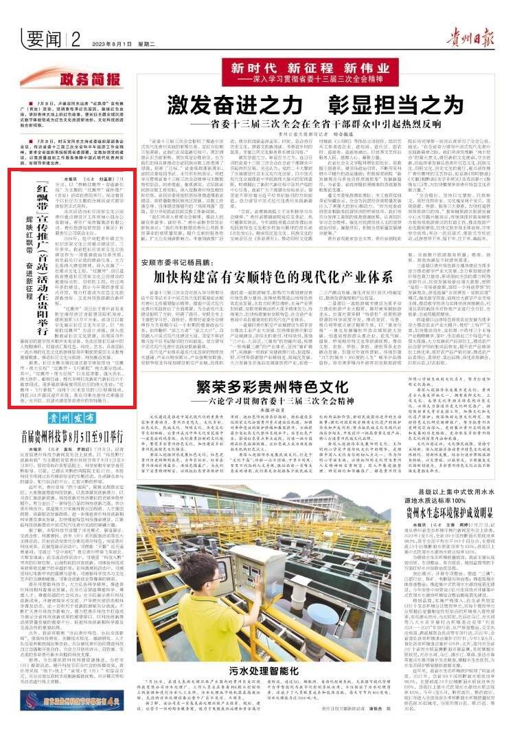 2019年,党中央把贵州确立为长征国家文化公园重点建设区。三年多来,我省把长征国家文化公园建设作为一项重要政治任务来抓,肩负起先行示范的使命任务,大力弘扬伟大建党精神,深入实施了一批重点文化工程。“红飘带”项目是我省推进长征国家文化公园建设的重要标志性、引领性工程,经过两年多的建设,预计今年第四季度正式开馆,努力打造成为红色文化旅游新地标、文化科技旅游融合新样板。