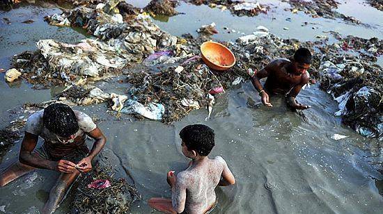 在恒河上,有无数漂浮垃圾无人管理。大量的生活垃圾、粪便被直接丢在恒河里。尤其是粪便,让恒河水拥有了正常数值100倍的大肠杆菌。即便如此,恒河两岸的人不经任何处理,直接引用恒河水活着用恒河水做饭吃。