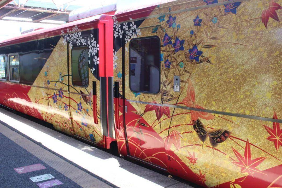 也许你听说过日本的金箔冰淇淋,那么金箔列车呢?花嫁のれん号,以北陆传统文化为构思理念,不仅外观设计使用了传统的轮岛涂及加贺友禅工艺,车内还设有和风个室,部分内饰使用了金箔,光彩夺目。