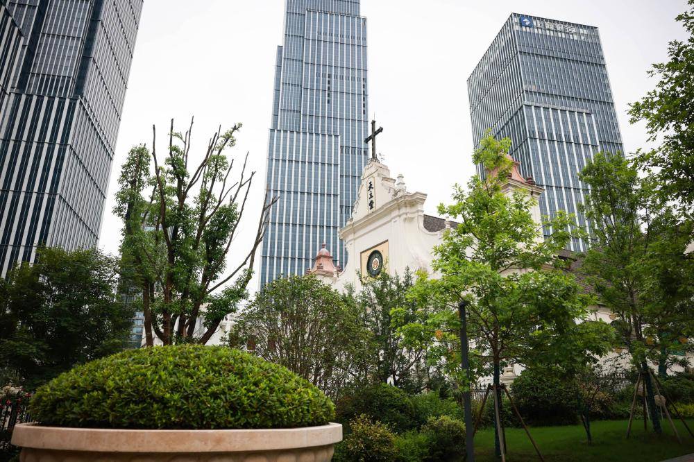 当天,记者来到的“绿地外滩中心”,其位于董家渡区域、中山南路西侧,是上海市中心滨江沿线最大的商务综合体。“绿地外滩中心”占地面积12.67万平方米,建筑面积约120万平方米,包括约46万平方米超高层地标及高端企业总部办公楼,约17万平方米大型商业中心,约4.2万平方米空中奢华酒店、约12万平方米高端住宅、约5万平方米的公共绿化,同时坐拥董家渡天主教堂和商船会馆两栋历史保护建筑、滨江文化休闲空间等文化功能配套。现已进驻的企业包括东浩兰生、建信人寿、中国人保、海通证券、上海银行、国海证券等企业。