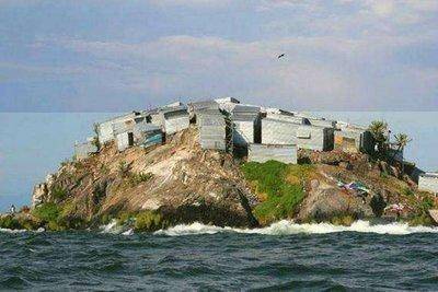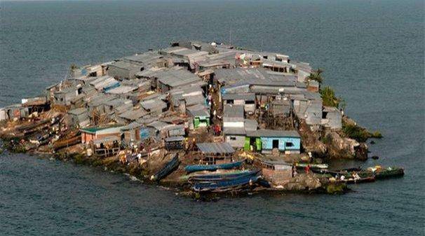 这两个小岛就是非洲东部的,米金戈岛和尤金戈岛。这两个岛屿都不是很大其中小的那个岛屿,可能只有半个足球场那么大。但居住的人可是非常多的,据了解这两座岛中的那座小岛居住着1000多人。几百个家庭,人均居住面积还不到2平方米,可以说是非常挤的。我们从外面看的话就像一个贫民窟,感觉岛上堆放的全是杂物看起来不像是能住人的地方!
