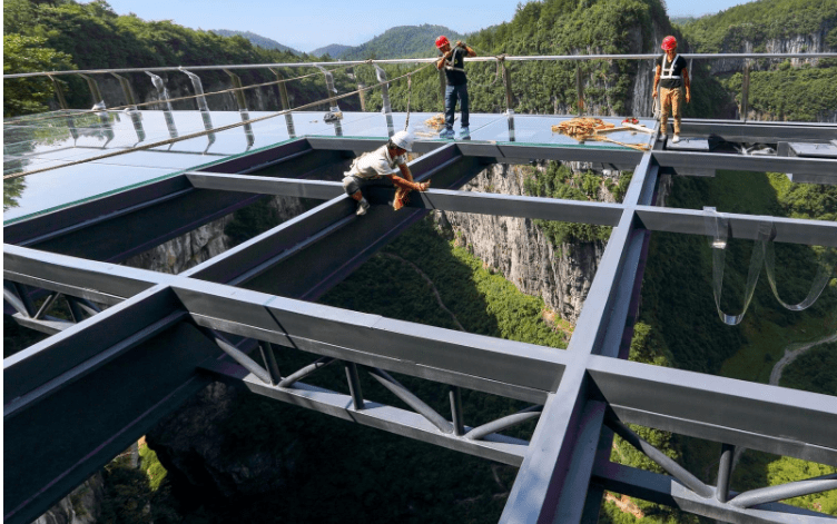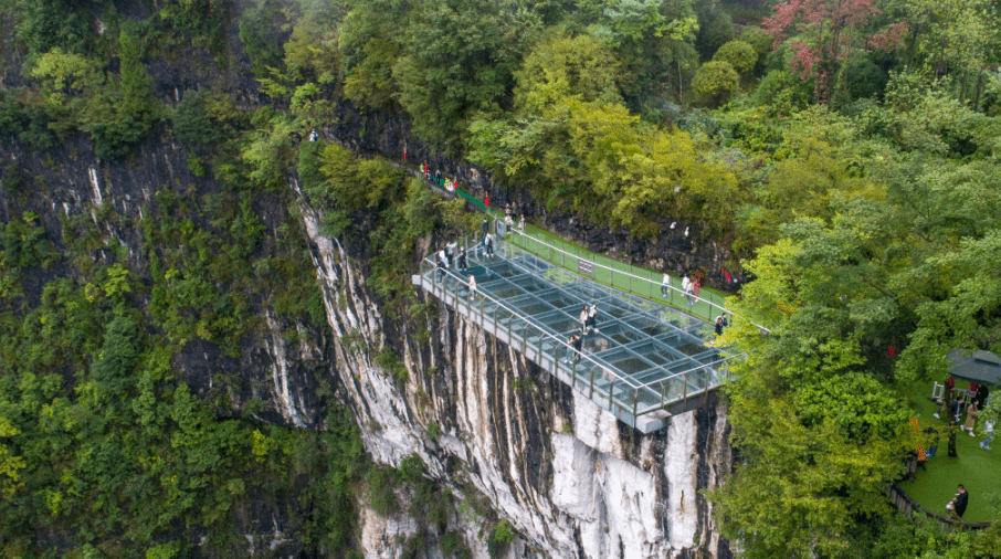 在重庆武隆,就有一个悬空在280米高、建在悬崖绝壁之上的全透明玻璃眺台,听说它能让每一个壮汉秒变小公主,让人心跳指数瞬间加倍,吸引许多追求刺激的游客争相前往打卡,这里就是武隆天生三桥玻璃眺台。