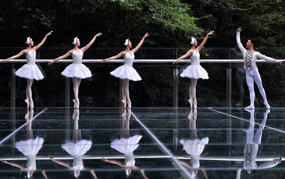 全透明的玻璃宛若凌驾空中,各个游客反映不一样,脚下垂直90度的悬崖绝壁,叫胆小的人望而生畏,胆战心惊;而胆大的人如履平地,甚至还有人直接在上面轻松跳起了芭蕾。
