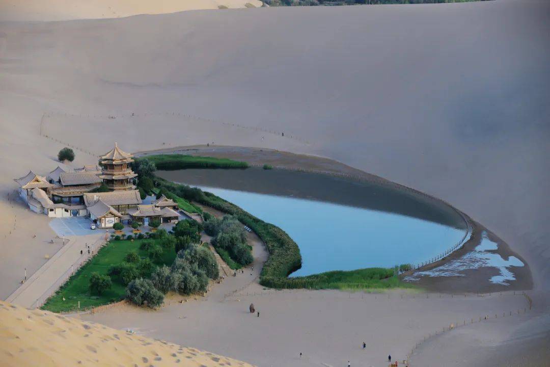 独特的地理位置孕育出了风光无限的神奇圣地,敦煌的鸣沙山月牙泉被誉为“塞外风光之一绝”。月牙泉地处鸣沙山的环抱之中,形似玄月,碧水粼粼,如同明镜,宛若诉说着千年往事。沙水共生,山泉相依,成就了“沙漠第一泉”的世界奇观。