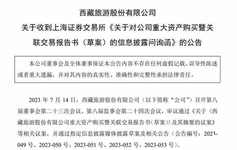 一年半前,曾经试图收购关联方资产新绎游船,最终没有下文的西藏旅游卷土重来,拟以9.41亿元现金收购前者60%股份。7月28日,上交所针对该事项下发《问询函》。