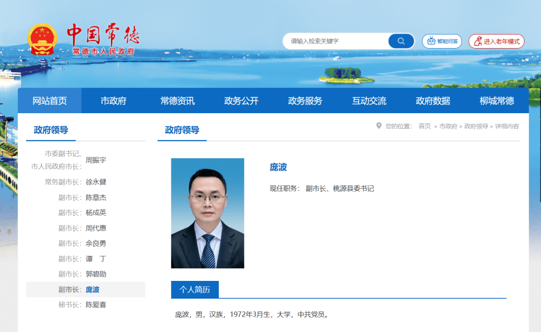 31日11时,记者登录常德市人民政府网站“政府领导”一栏看到,在副市长一栏中,最后一位是庞波。信息显示,庞波,男,汉族,1972年3月生,大学,中共党员。现任职务是常德市人民政府副市长、桃源县委书记。