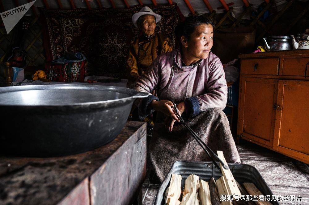 蒙古包中的蒙古族家庭。蒙古包帐篷用木架搭建,外罩帆布,是蒙古族游牧民族的避难所。帐篷中间有一个炉子,可以做饭和在寒冷的时候取暖。