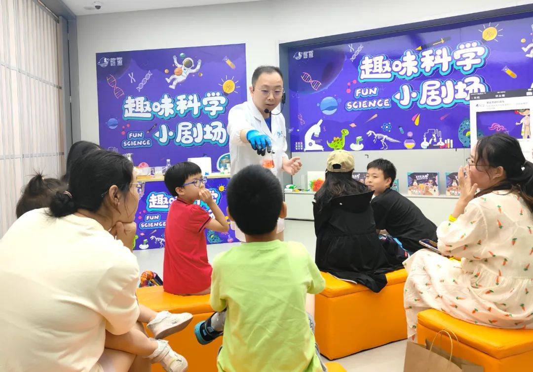 不仅如此,诺篮流动科技馆内还设有趣味科学小剧场,早上十点开始到晚上八点,每场持续一小时,剧场包括“仙境干冰秀”“星梦泡泡秀”“极致低温秀”“嘻哈空气秀”“变幻莫测秀”五大项目,点亮儿童科技奇梦。剧场内,一幕幕生动有趣的科学实验牢牢抓住了儿童的眼球,一问一答之间,小朋友们踊跃参与,彼此热烈讨论,慢慢浸入科学世界的氛围之中。