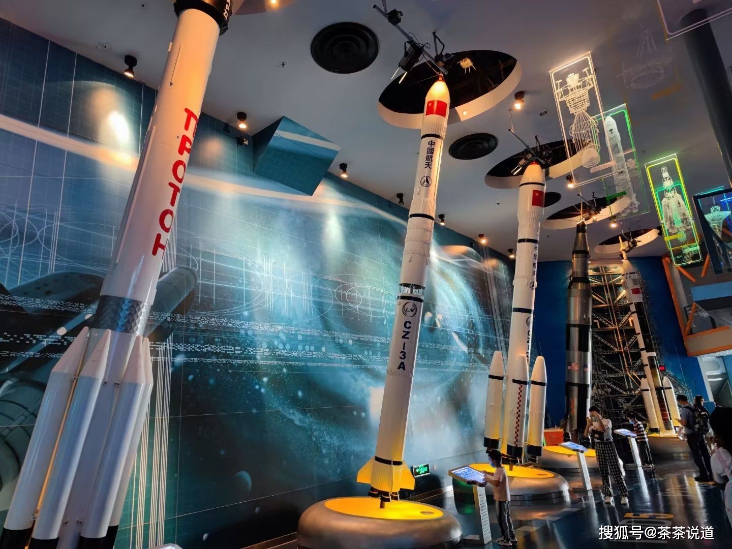 在宇航天地,我们可以看到宇宙成就展示和神舟五号载人飞船的模型。
