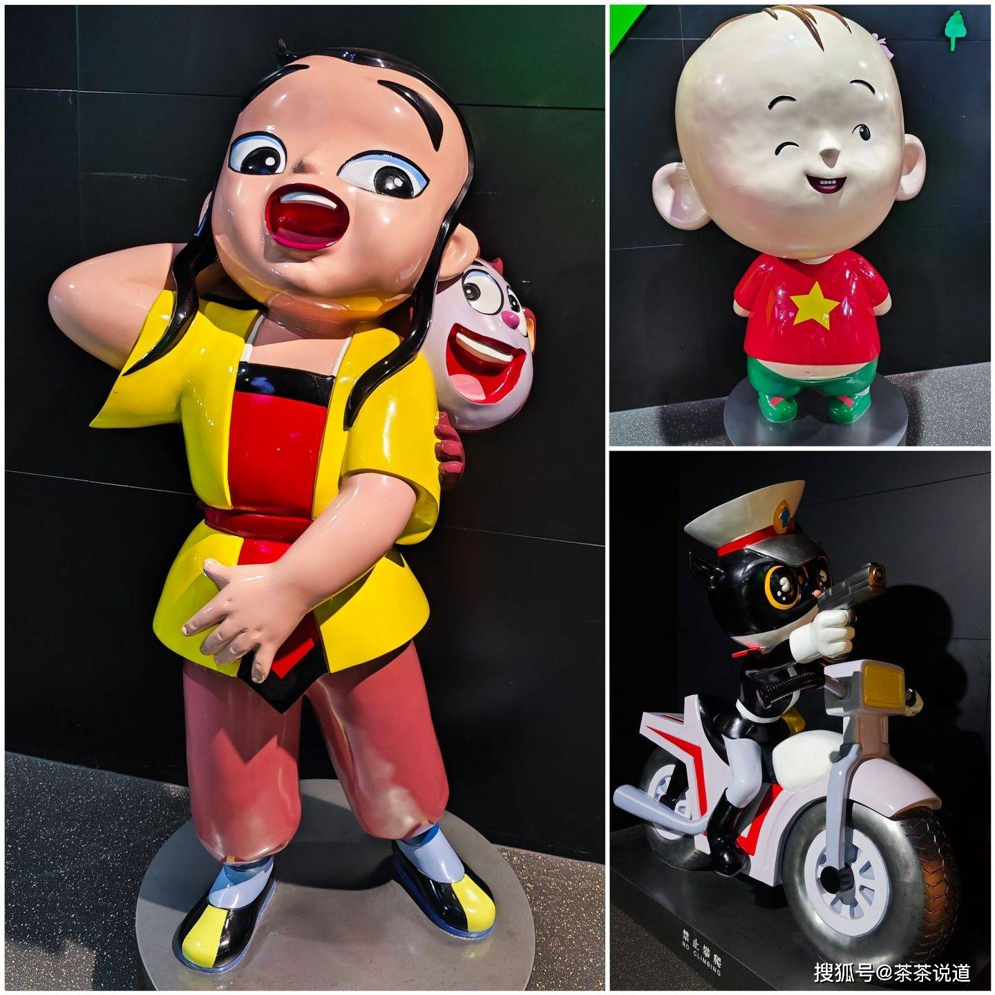 还有我们小时候最爱看的动画片人物雕像:黑猫警长、沉香。