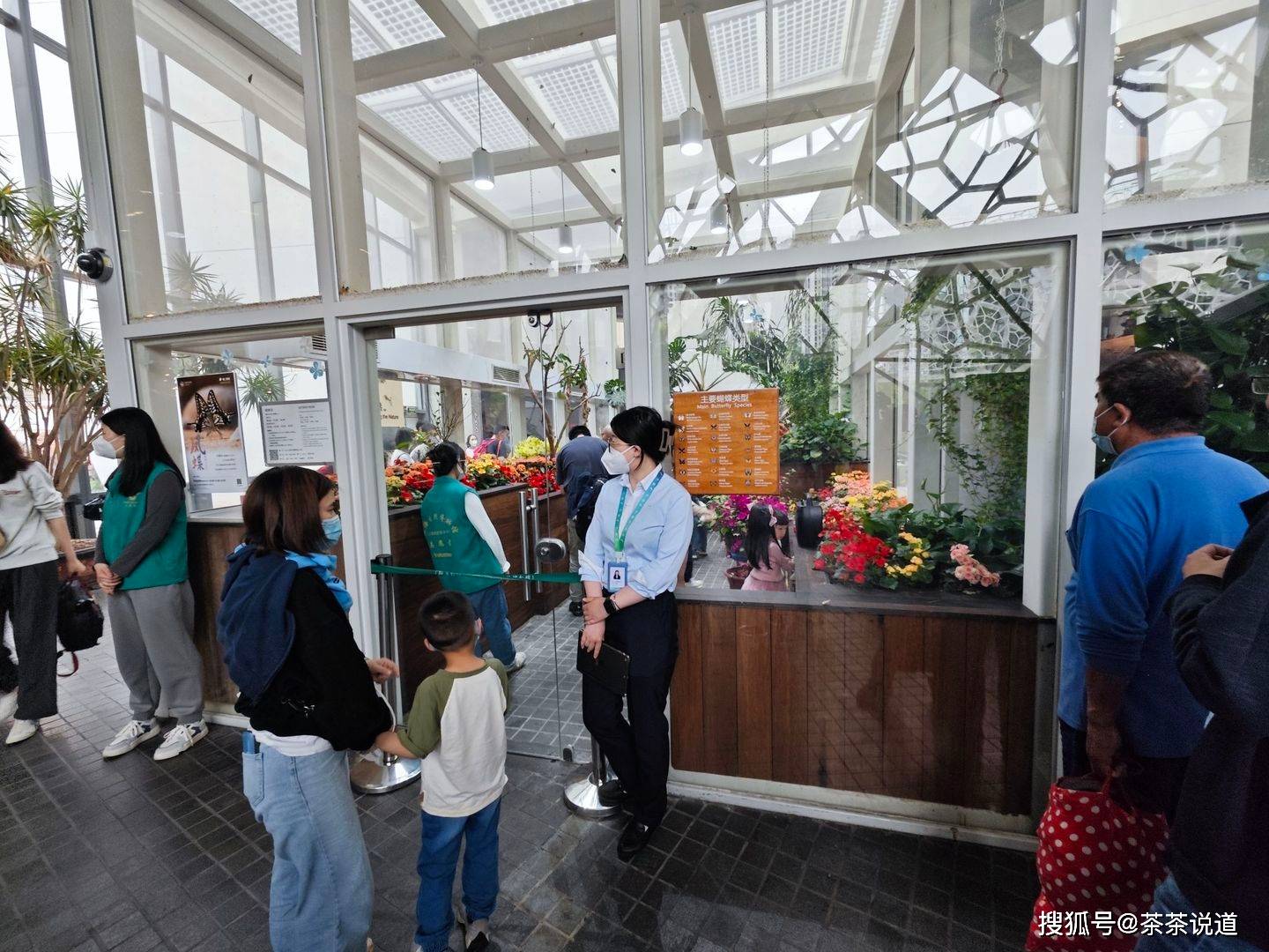 工作人员身后的玻璃房就是蝴蝶房,需提前预约方可进入