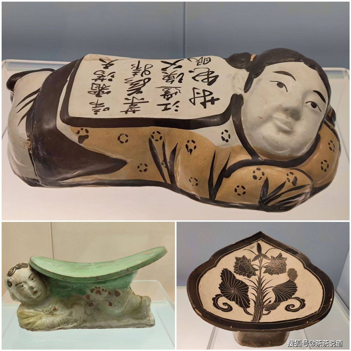 陶瓷展馆内的展品也超好看。这些是造型各异的陶瓷枕头,睡习惯了柔软的乳胶枕,真难想象古人每天垫着这么硬的枕头如何睡得着。