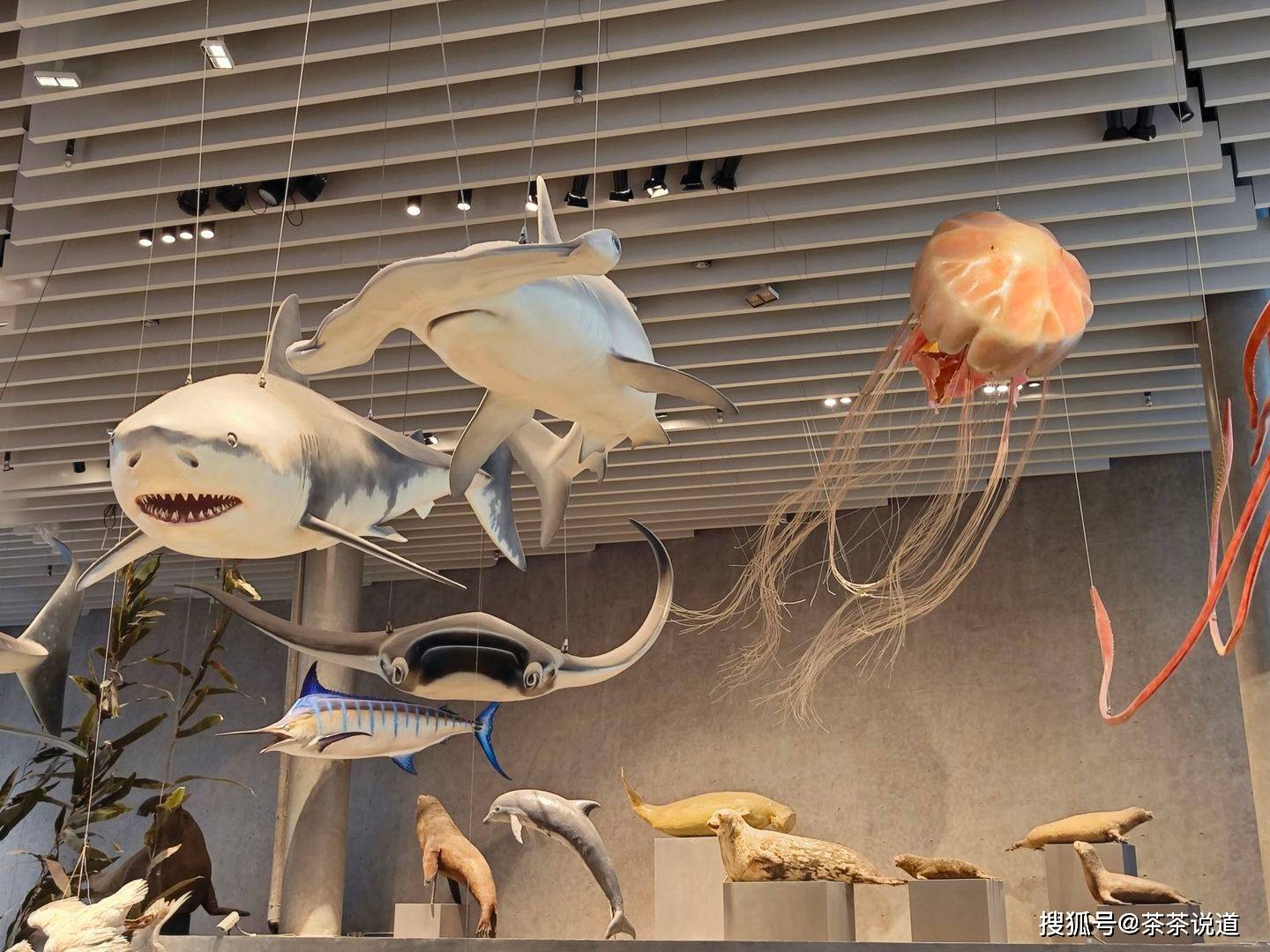 吊在天花板上的海洋生物们仿佛真的活在海洋里一样,看起来摇曳生姿。