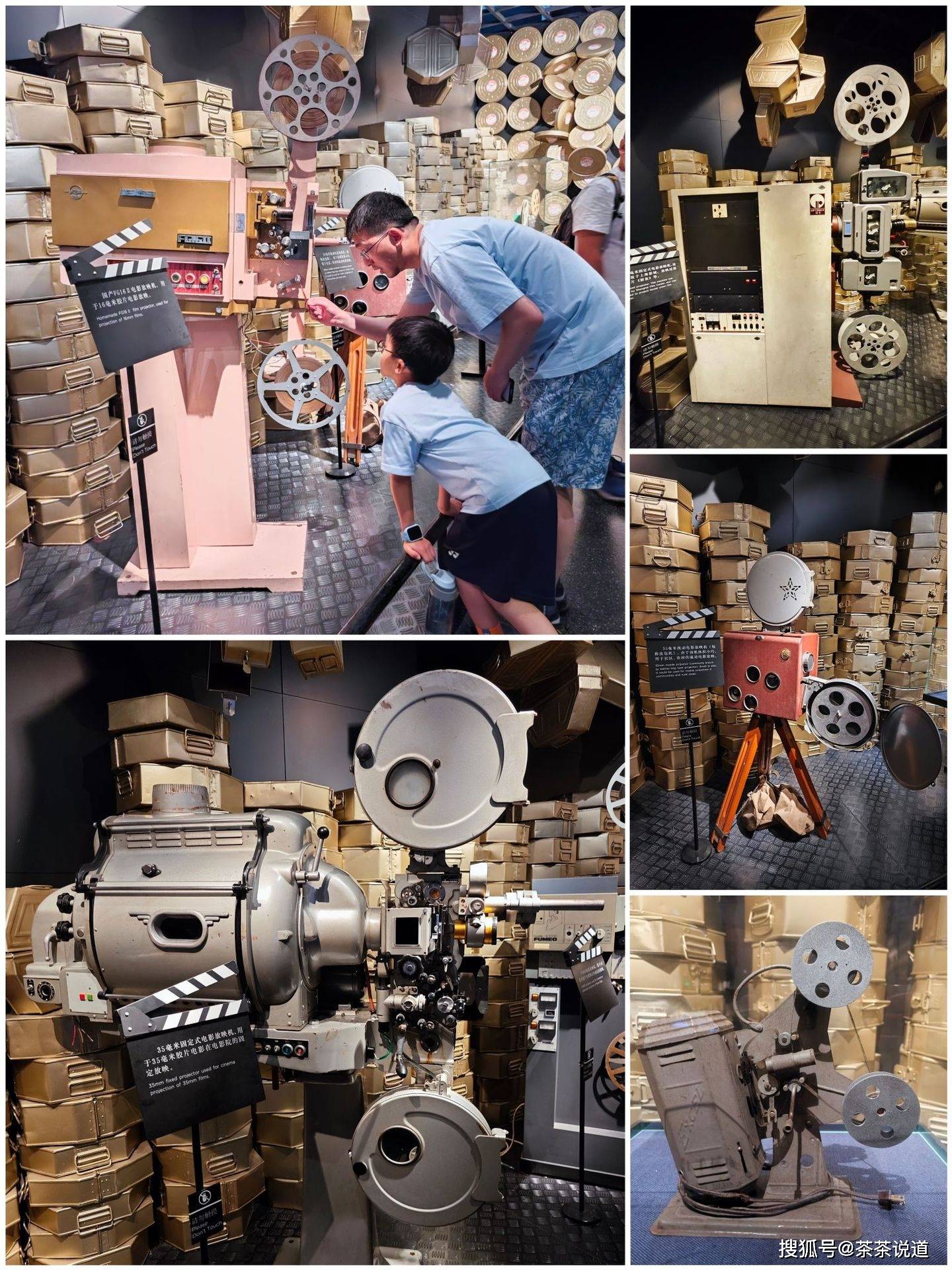 这些都是电影放映机。记得我们小时候去大广场上看电影,工作人员就是通过这种设备给大家放电影的。
