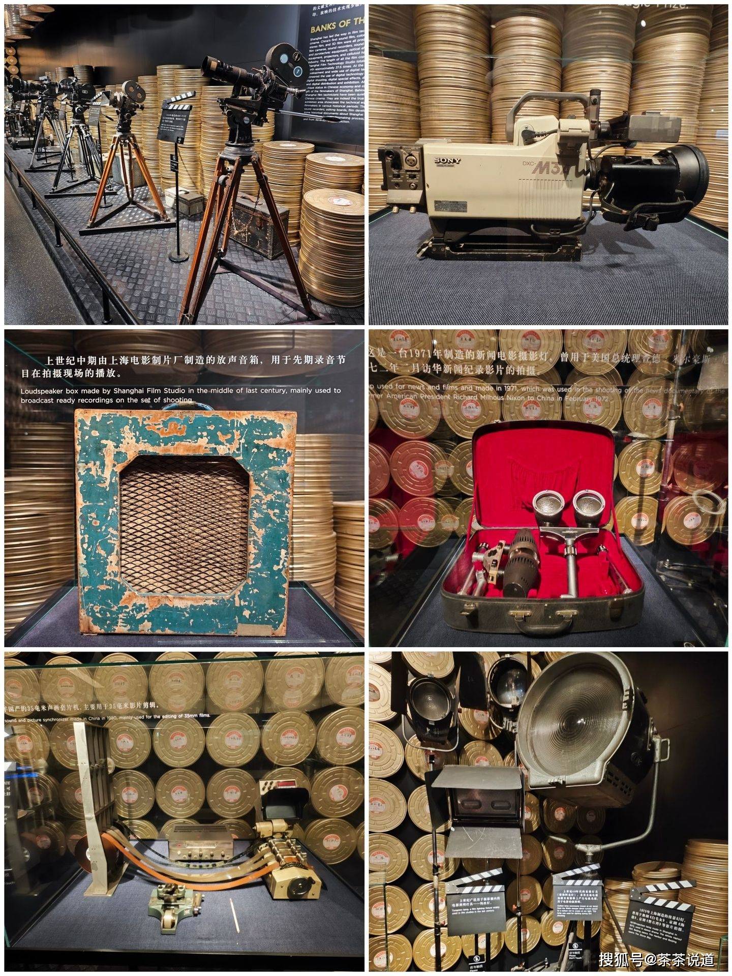 有制作电影必须用上的各种设备展出:摄影机、放声音箱、声画套片机、电影摄影灯、补光灯等。