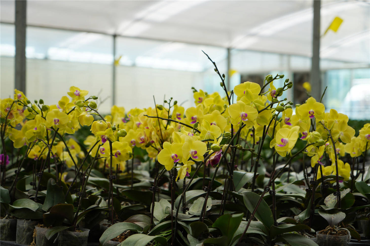 一进去映入眼帘的就是这些温室大棚,阵阵花香扑面而来。区这里有很大的蝴蝶兰养殖基地,在花卉繁育展示区五颜六色的兰花看着很壮观,来游玩的游客还可以用自己的门票兑换兰花或者其它花卉。这里3万平方米的智能温室培育各类蝴蝶兰120万株,预计年收入520万元。