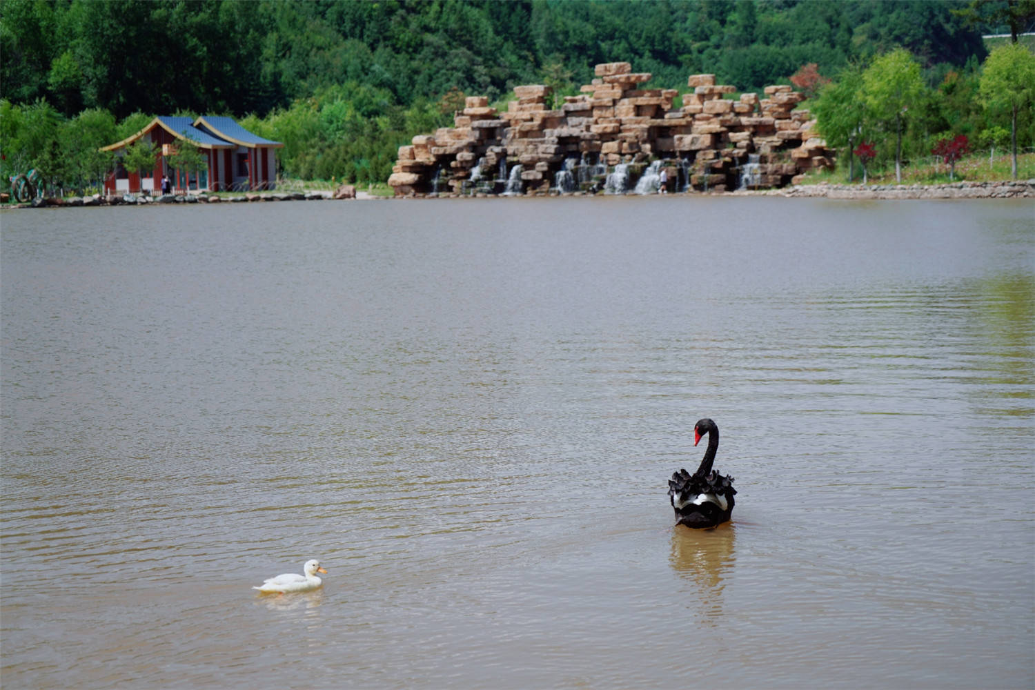 天鹅湖中的黑天鹅被人一叫就会游上岸与游人互动,小朋友可喜欢了,在这里就能玩半天。湖中喷泉四射,瀑布飞泻,岸边沙滩,秋千,好几个漂亮的景观设计拍照巨好看。
