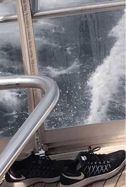 鞋没丢,笑对镜头比剪刀手的身后,不就有一双鞋子吗?