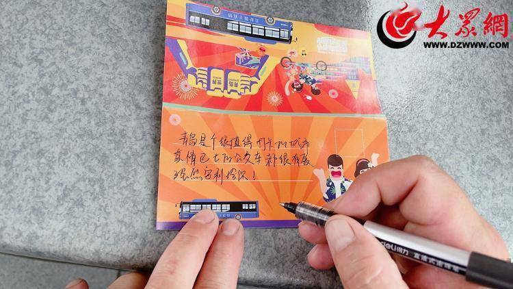 跟随着小陈同学的脚步,记者一行来到了位于啤酒城内的哈舅邮局。经过与邮局工作人员的沟通,小陈同学了解到,可以直接在这张明信片上留言后粘贴邮票邮寄,也可以留言后将明信片放置于信封内进行邮寄。小陈同学表示,自己想要将这张非常有纪念意义的明信片邮寄给自己还在外求学的朋友,告诉他青岛很美,一定要来看看,青岛真情巴士的公交车也很有特色,一定要来打卡。