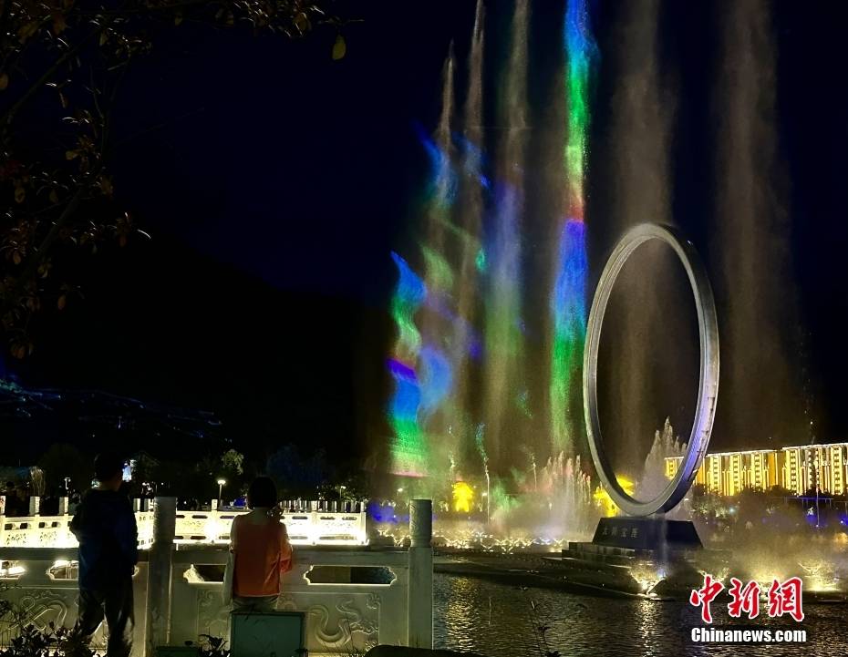 唯美绚烂的水幕盛宴让大家驻足欣赏、流连忘返。钱姣姣 摄