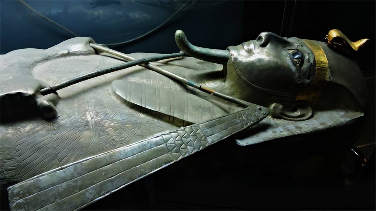 这个令人震惊的发现是由法国埃及学家皮埃尔·蒙特在第二十一和第二十二王朝国王的陵墓群中发现的,它位于坦尼斯,即古埃及在第三中间期时期的首都。考古学家小组在挖掘古代陵墓时发现了一个未被打扰的墓室。它非常小,只有4米乘2米。中间放着一个小型的银质石棺,根据铭文,它属于法老谢申克二世。
