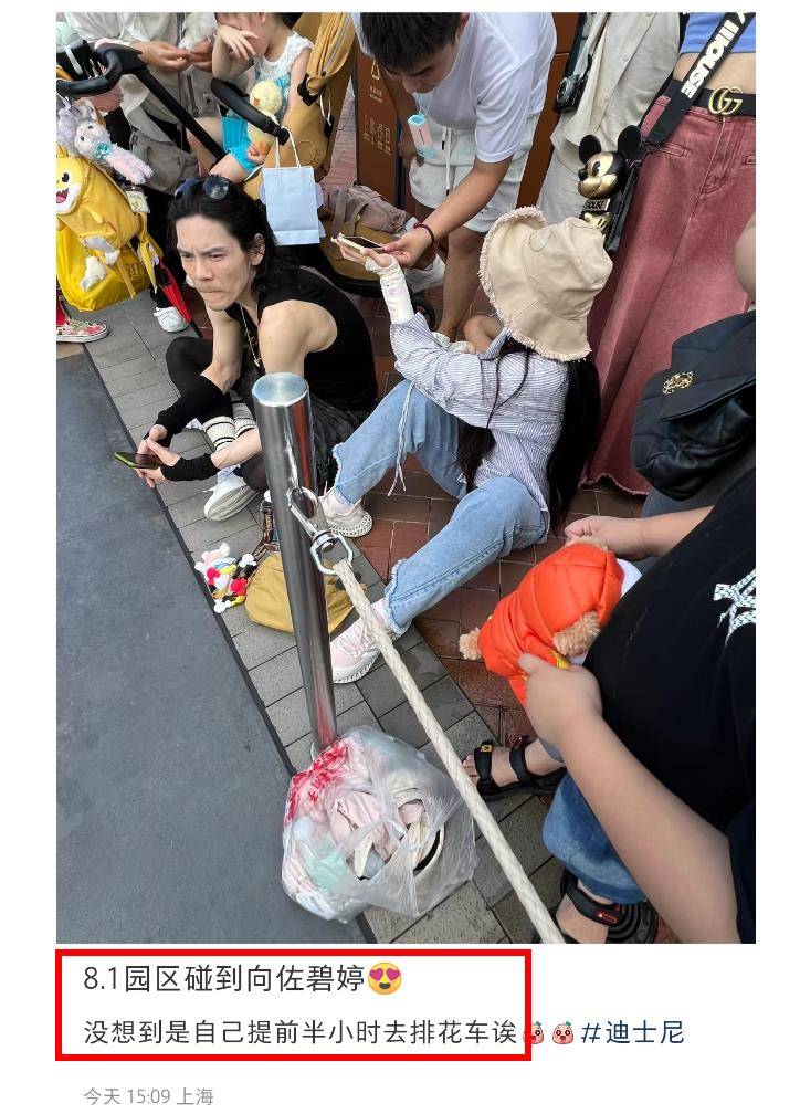 众所周知,迪士尼花车要想找一个好位置必须提前占位置,因此很多人在花车开启前半小时就早早等候,只是这炎炎烈日等待实在太辛苦,很多明星便会花钱买vip享受免排队的服务。不过向佐郭碧婷却亲自排队,着实让人不解。