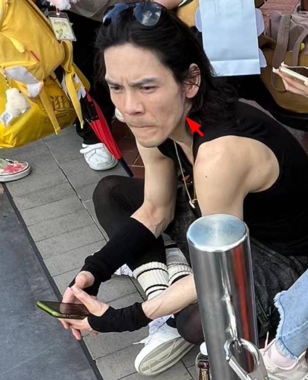 郭碧婷也直接坐在地上摊开双腿,应该是等待太久太辛苦,已经完全不顾及形象。