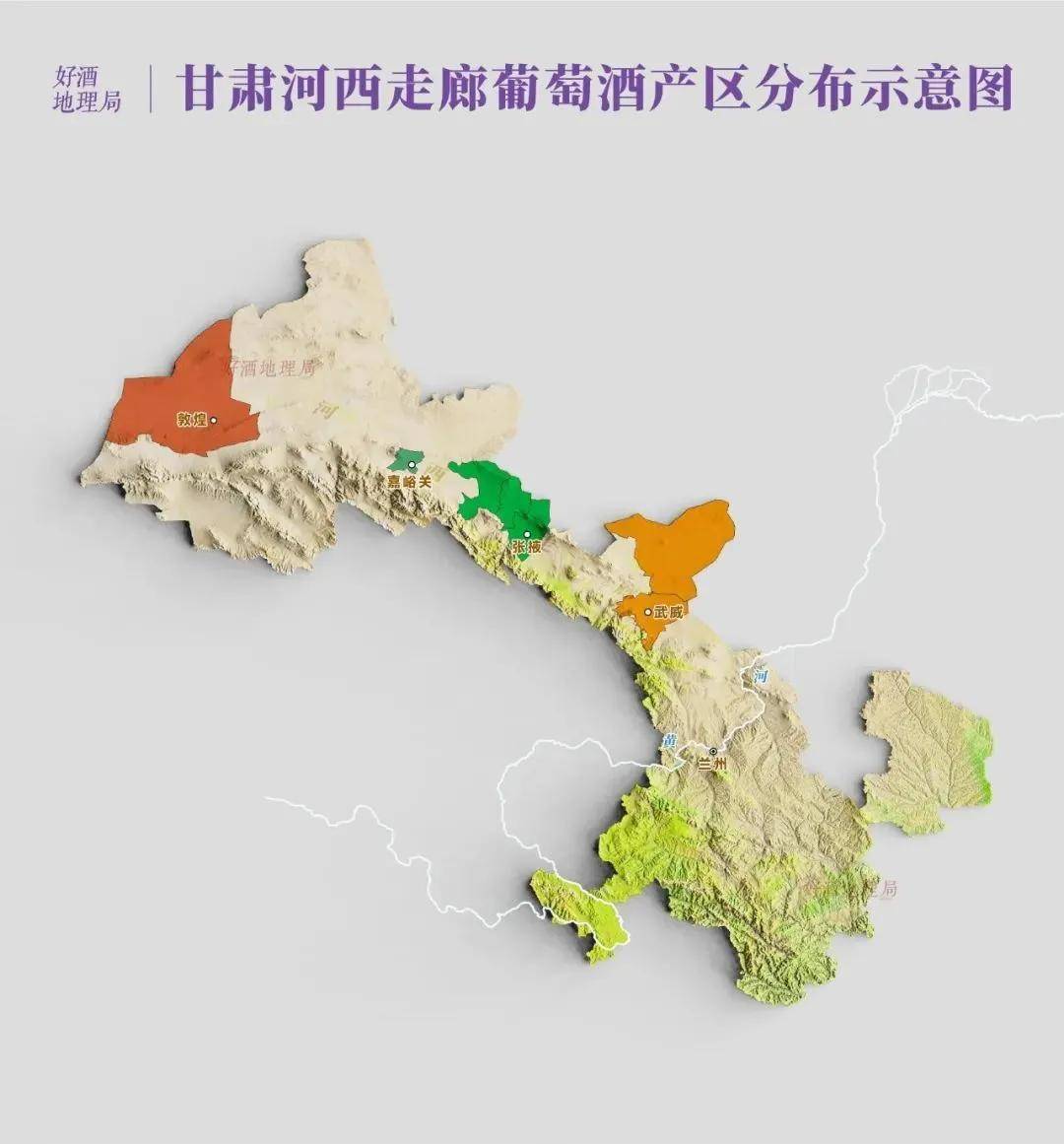 |作为中国葡萄酒重要产区之一,甘肃产区自20世纪80年代开始投入运作,经过30多年的发展,已形成了武威、张掖、嘉峪关、敦煌等子产区。 制图/好酒地理局视觉中心
