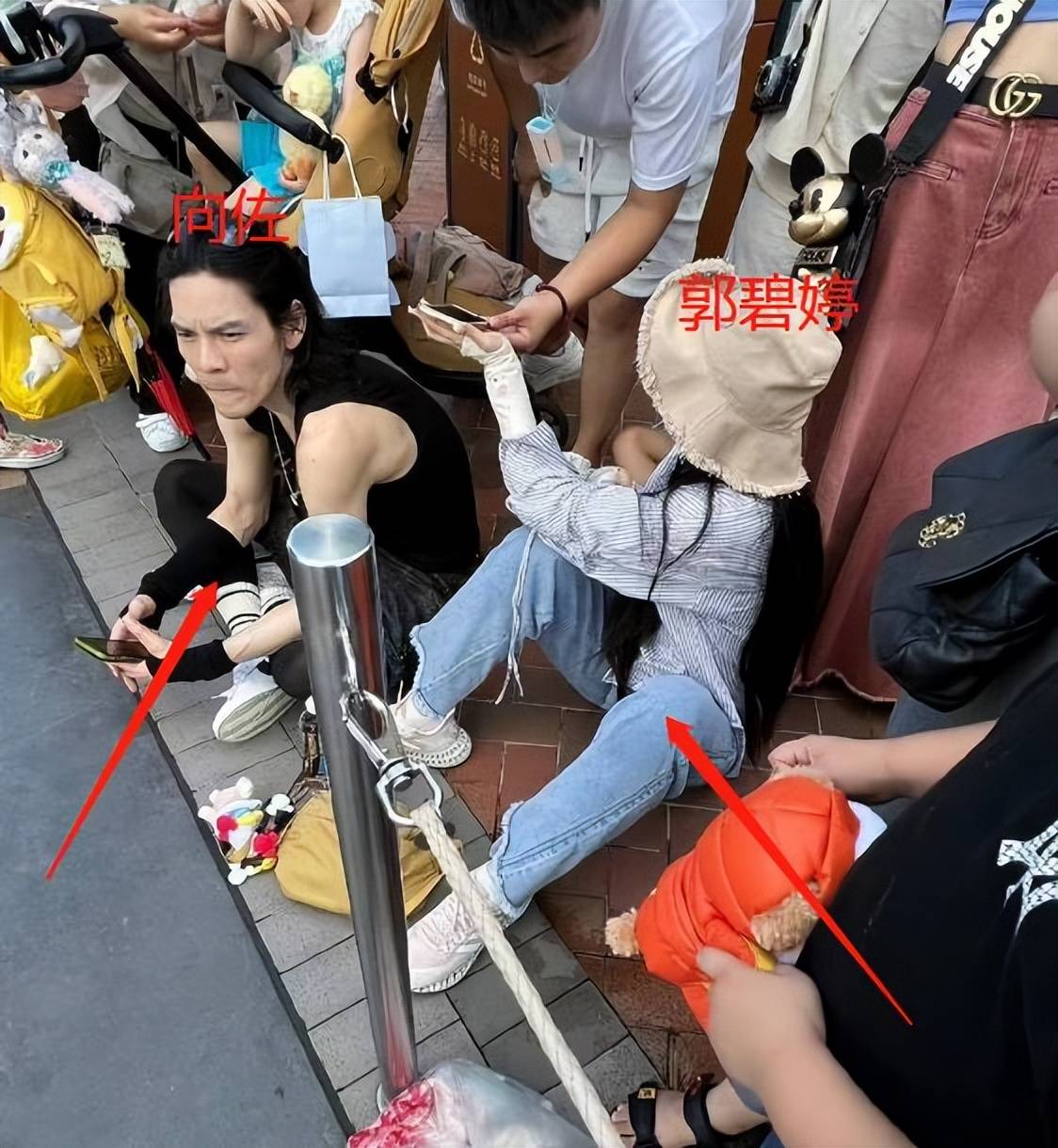 更奇怪的是,郭碧婷和向佐不是因为玩累才坐地上,而是为了排队看花车。按照向佐和郭碧婷的家庭情况,应该可以买那种“豪华票”,就是不需要排队,可以优先玩各种项目的那种,显然郭碧婷并没有买。