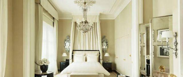 套房的装饰反映了香奈儿的室内美学:漆墙、镀金狮子、优雅的科罗曼德屏风、大量镜子和黑白配色方案。