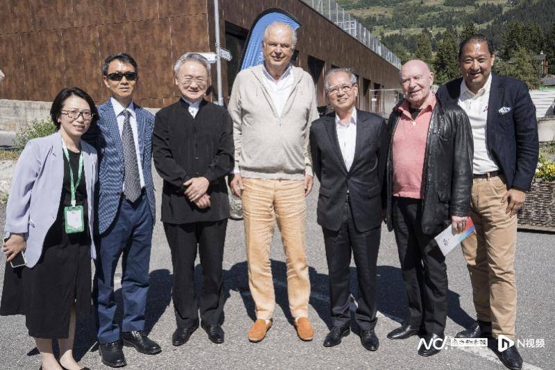 指挥泰斗克里斯托弗·艾森巴赫(右二)、音乐节创始人马丁·恩斯特龙(中)、大提琴家王健(左三)、中国驻瑞士联邦大使馆参赞向世海(左二)、广青交名誉团长余其铿(右三)、团长陈智敏(左一)、吴氏策划董事长吴嘉童(右一)