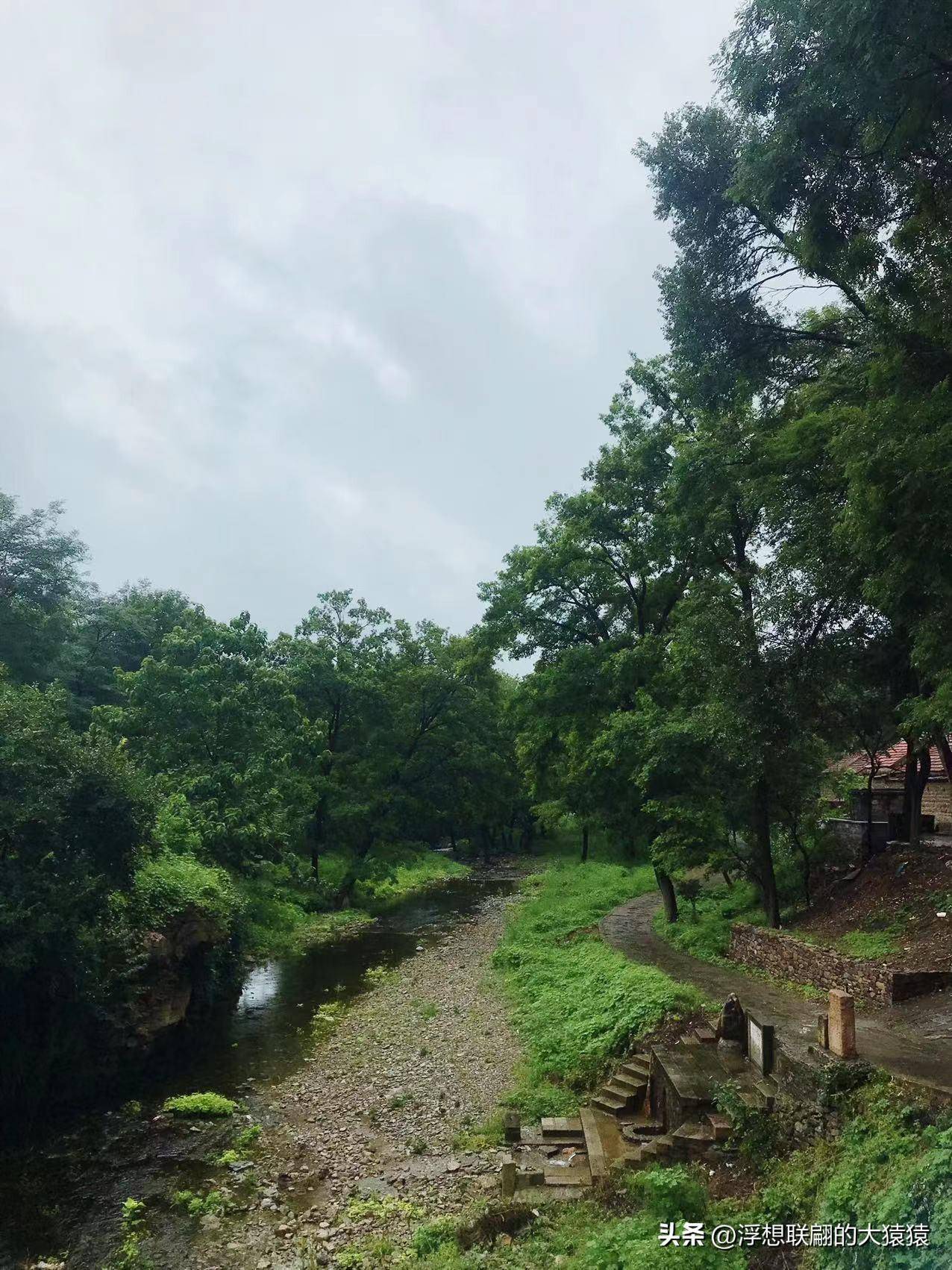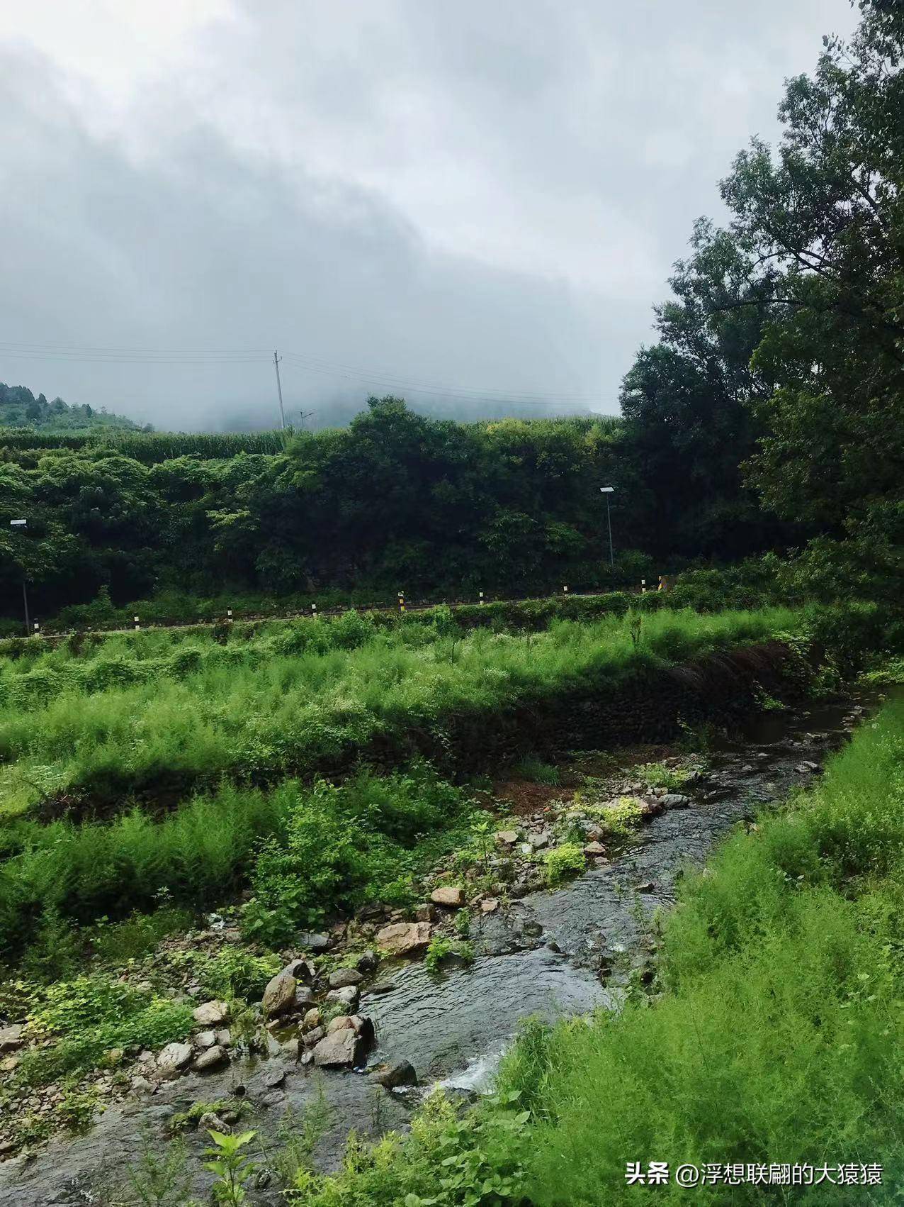 离开三角湾村后,沿路左侧是条潺潺流淌的小溪,由于大量雨水的汇入,溪水更加的欢快。两侧高大的树木,树头都交织在了一起,蔽出一溜天然的凉棚。