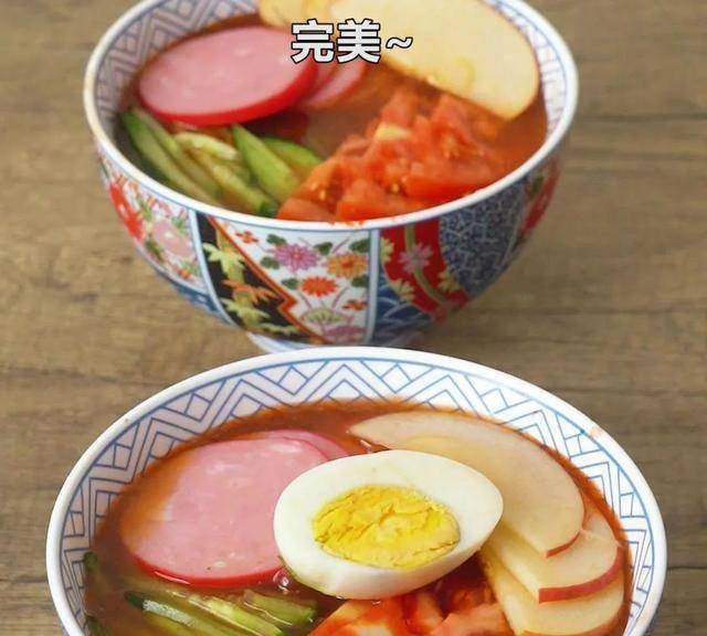 苹果、黄瓜、大红肠、西红柿水煮蛋、荞麦面、五花肉、生菜
