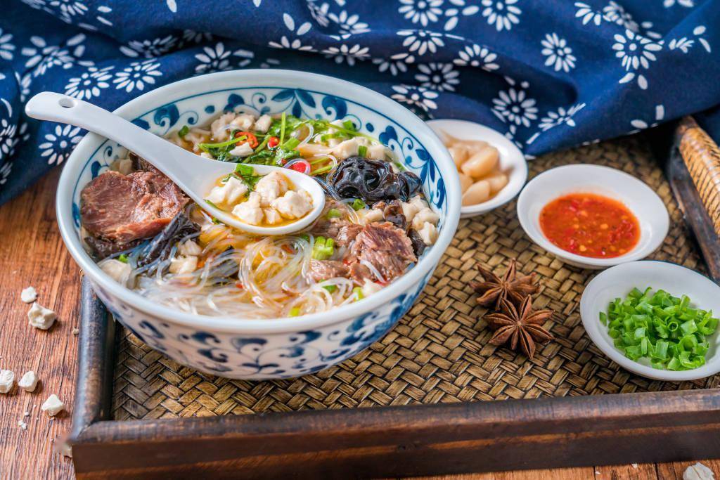 “口汤”就是在吃完馍以后,就剩一口汤。“水围城”顾名思义,宽汤。本着汤宽馍块大的原则,如果在吃“口汤”和“水围城”时不拿筷子,有经验的师傅看到掰馍大小就知道要加多少汤了。图/视觉中国