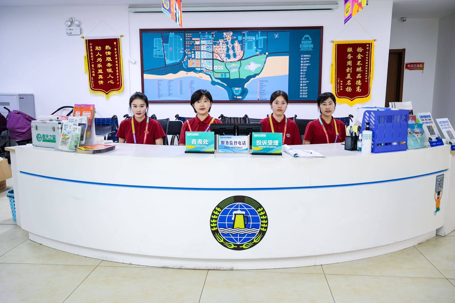 青岛啤酒节,醉美西海岸。当星光大道的灯光焰火在游客的欢呼中升腾的时候,当啤酒大篷的激情狂欢在美酒佳肴中释放的时候,当无数游客在灯光秀下拍照打卡的时候……而青岛西海岸新区金沙滩啤酒城游客服务中心的工作人员,仍还在紧张忙碌着,秉承着“人文、便民”的宗旨,他们全心竭力地为游客提供服务,以饱满的热情与积极的工作态度引导游客在啤酒城里感受人间烟火,畅享舌尖美味,让来自五湖四海的游客朋友感受到了青岛西海岸新区人民的活力与激情。